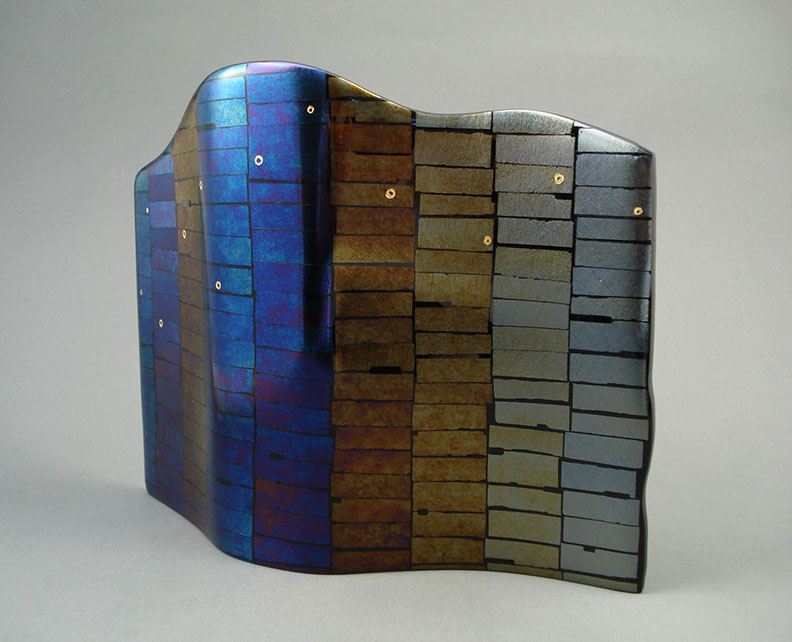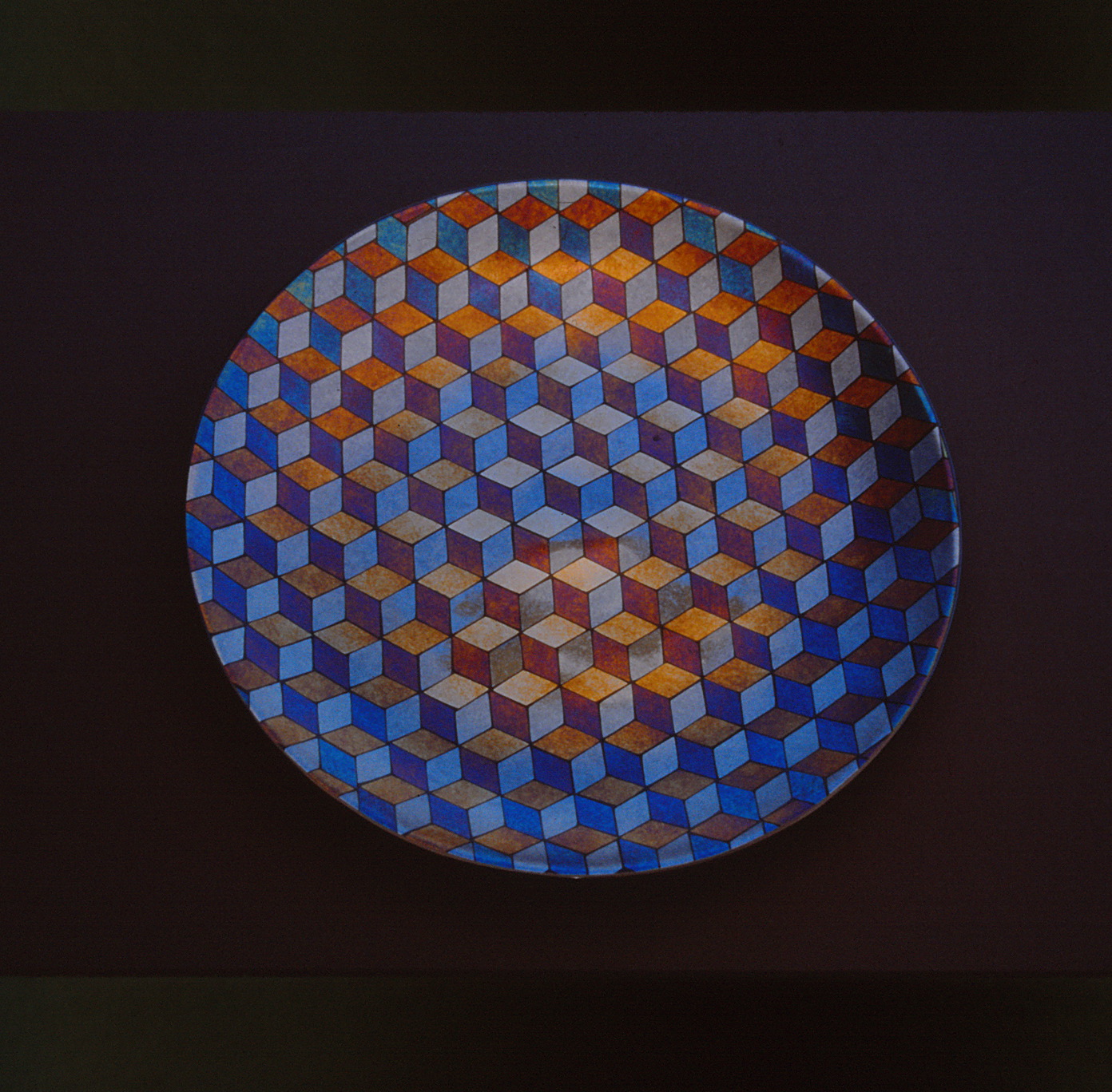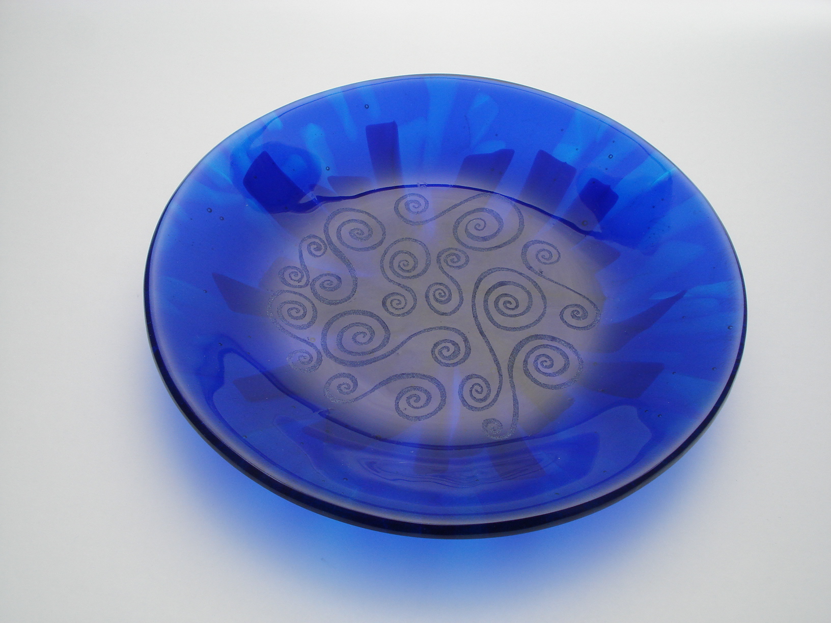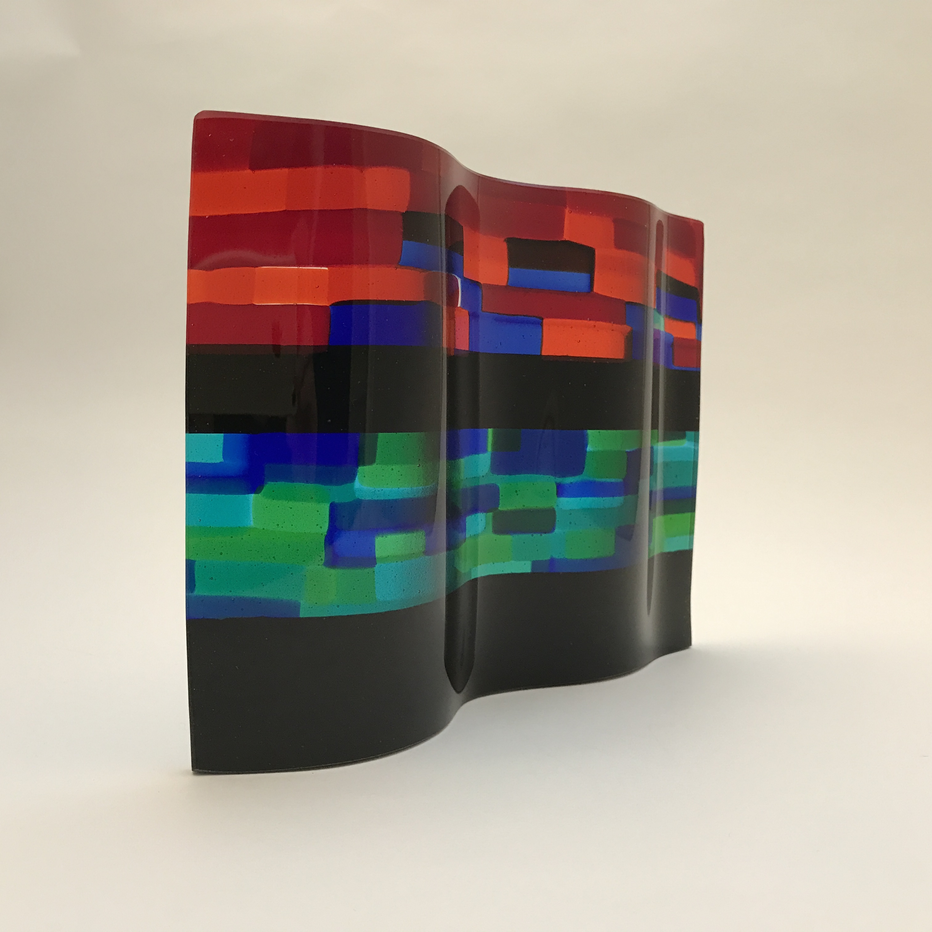 Fused glass is a process that involves the use of a kiln and dates back to the Ancient Egyptians. The technique could be compared to mosaic inlay work. Sometimes more than 50 pieces of glass, cut, ground and polished go into a single piece of artwork. Each piece may go through as many as five separate firings in a kiln. The first firing at high temperature fully fuses all of the design elements together. The second and subsequent firings are used to add more glass layers or fire polish the edges. |